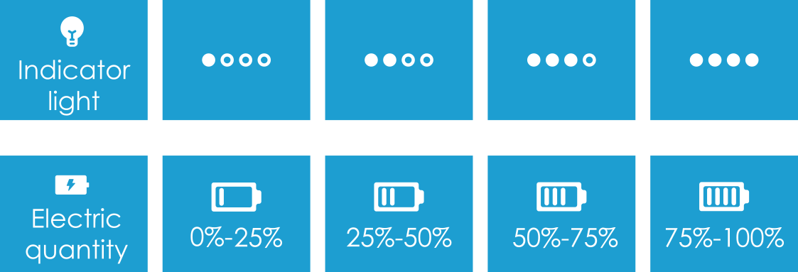 The B2 has four indicator lights. When plugging in the charger and charging cable to charge the B2, the indicator lights first blink in sequence, and then one full charge,frame jumps to the next and so on